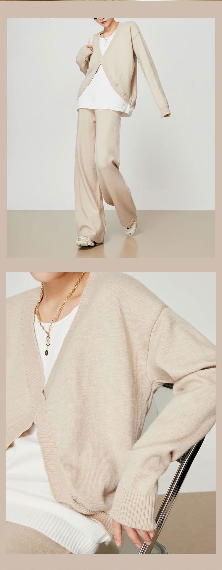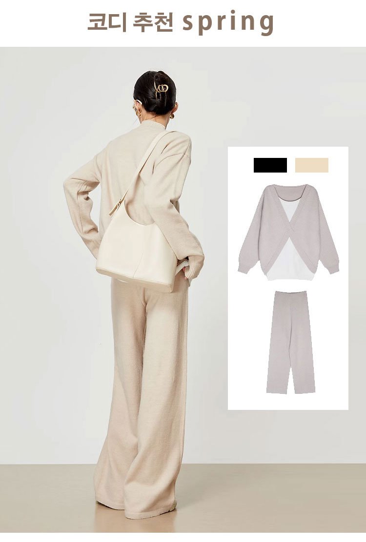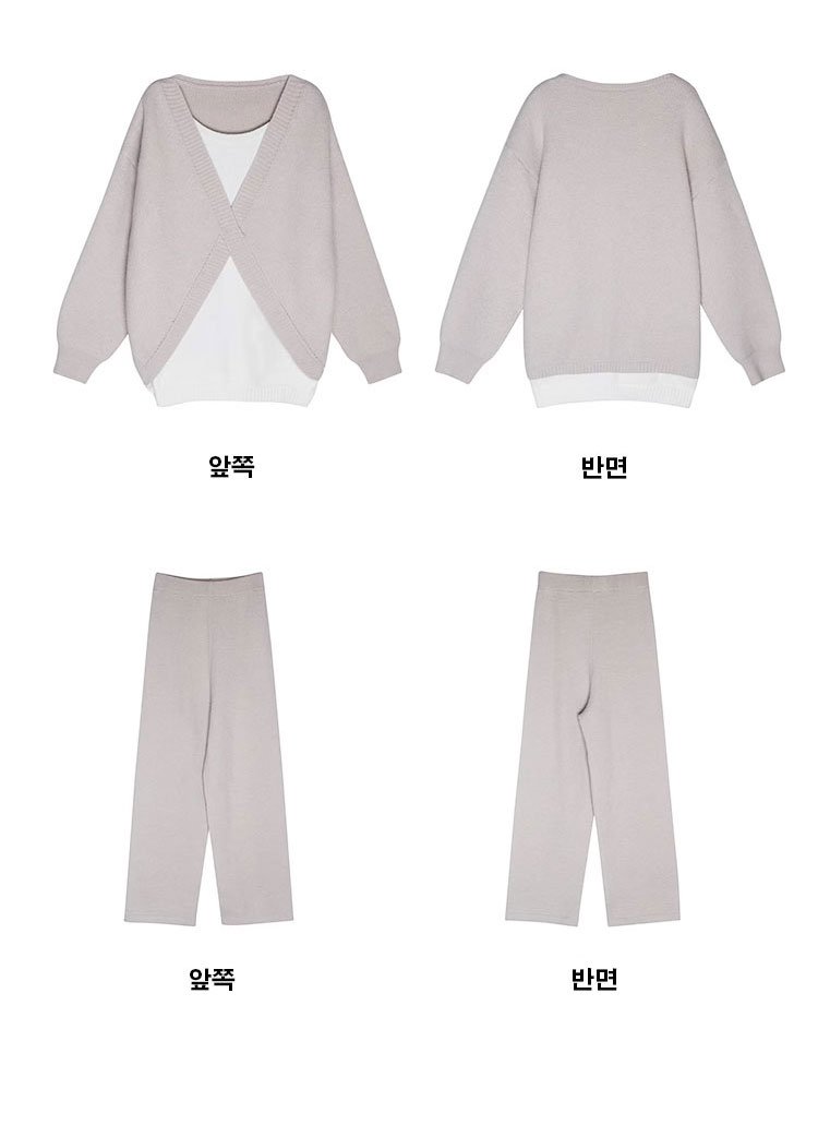 나른 스타일 개주얼 페이크 투피스 니트 세트